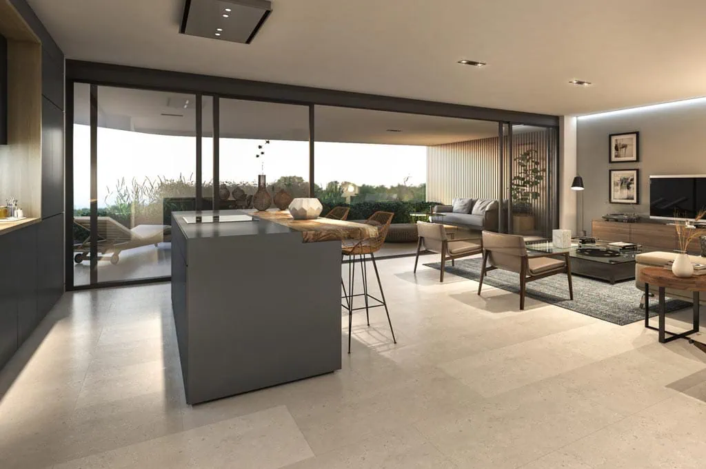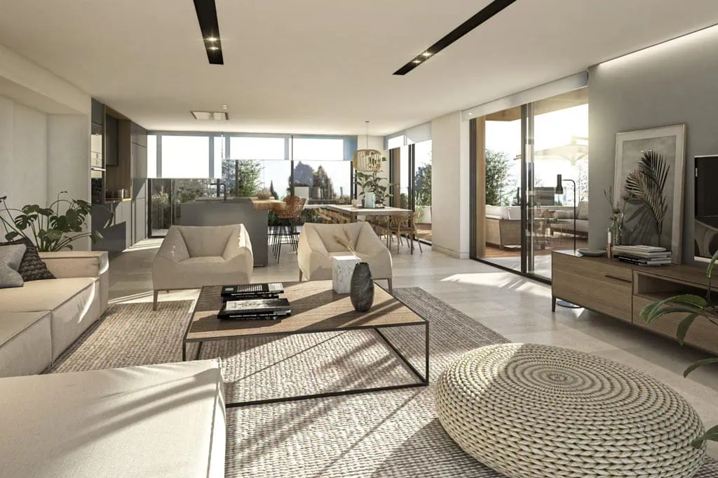 Desde nuestros impresionantes apartamentos de uno, dos, tres y cuatro dormitorios, hasta los exclusivos áticos de cuatro y cinco dormitorios, todas nuestras viviendas ofrecen lo último en cuanto a espacios modernos y abiertos. Impregnados de luz natural, también albergan espectaculares terrazas en las